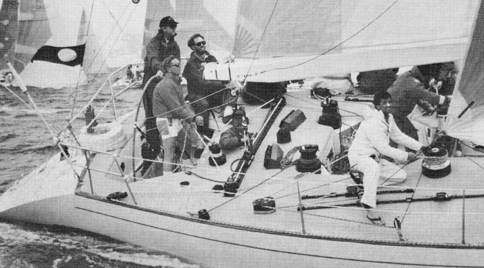 IOR 50 footer sailing yacht. Designed by A. Vallicelli & Co. Built in USA of Sandwich Composites. Construction Technical Assistance by F. Sena. The Vallicelli design Springbok, rated 40.3ft – competed in the Kenwood Cup in 1986 with Dennis Conner at the helm but lost her rig (photo John A Glynn/Sailing World)