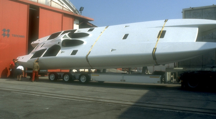 Progetto di Michael Peters Yacht Design. Costruito in Italia a Tencara in preimpregnati di Carbonio e anime di Nomex e PVC espanso. Sviluppo del processo e gestione della costruzione.
