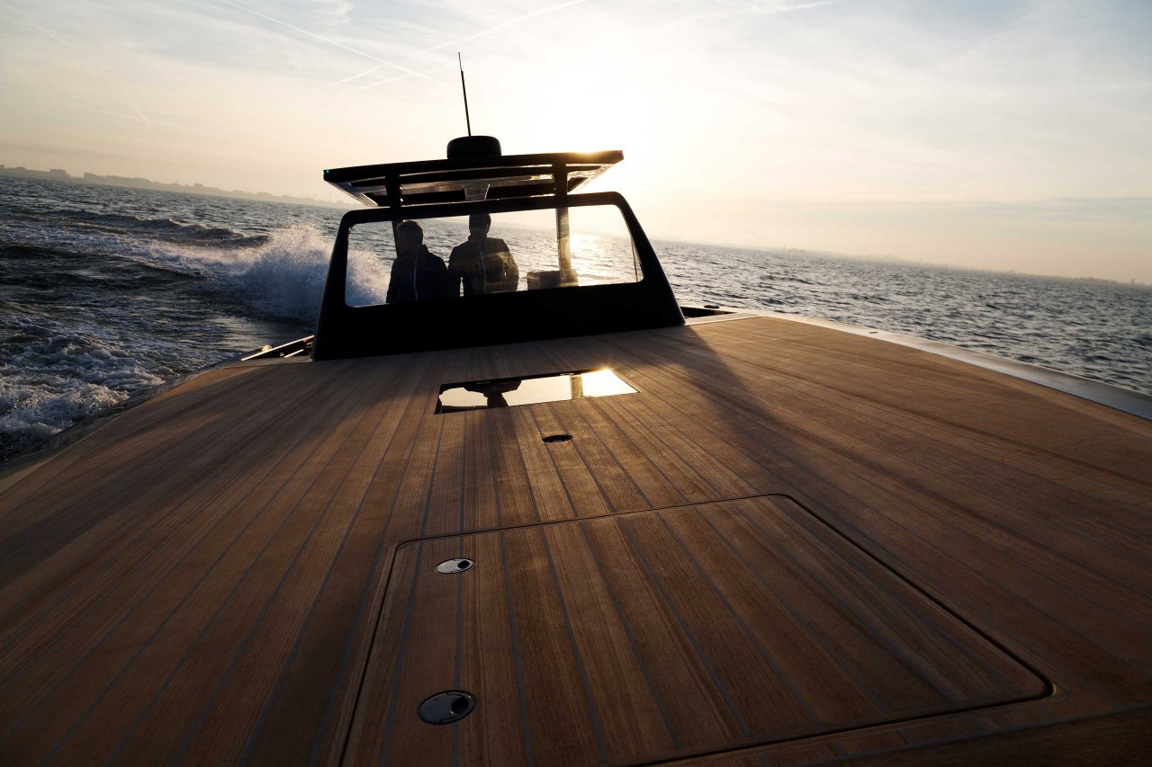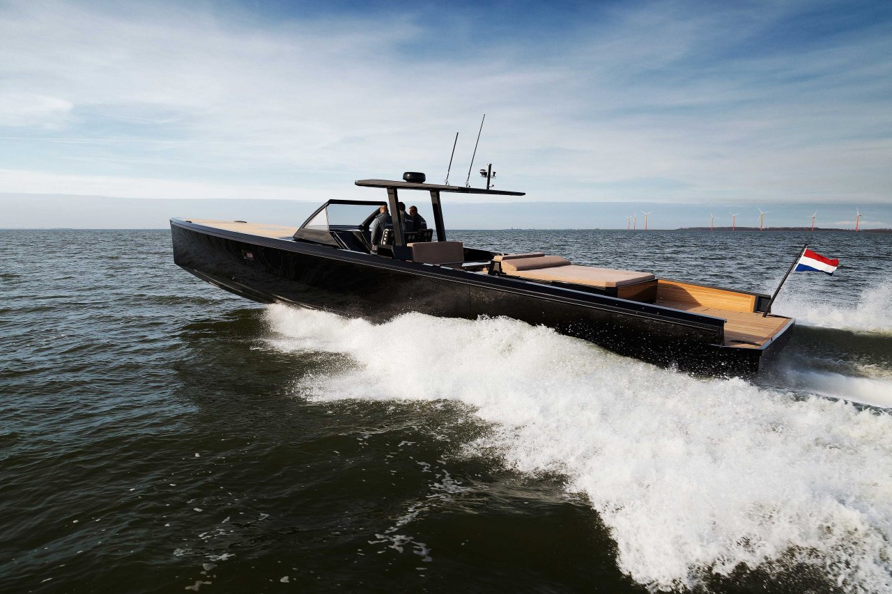 Super Yacht tender constructed at Trimarine. This lightweight, mirror-finished boat is designed to provide speed, agility and efficiency, with a top speed of 45 knots and the capacity to travel 500 nautical miles at 25 knots. Hand-crafted from pre-preg carbon fibre.